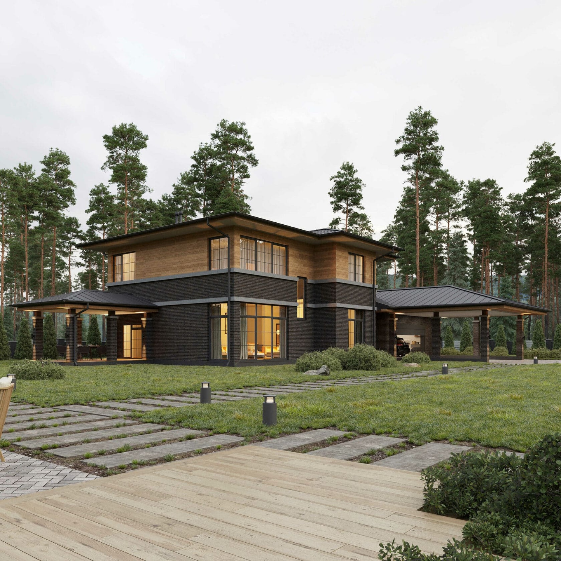Площадь крылец/террас/навеса: 74,2 м²