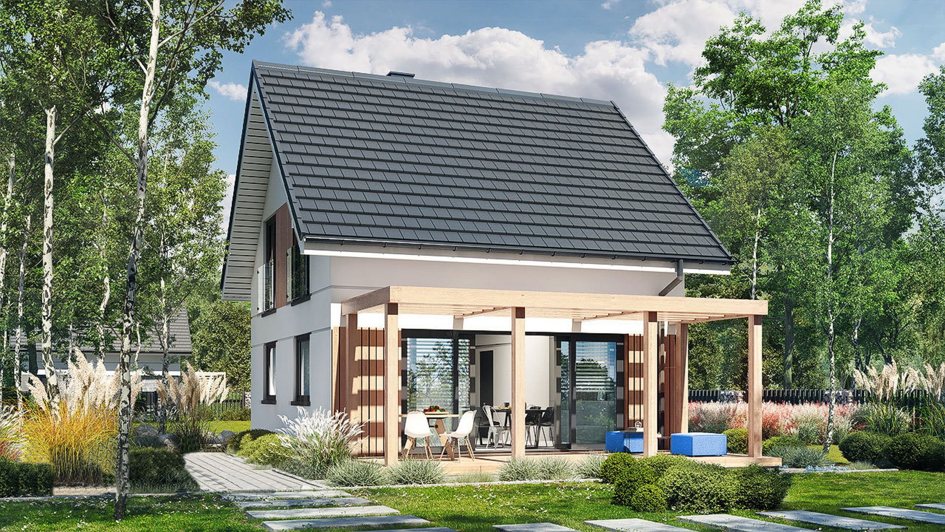 Общая площадь дома: 82,96 м² + терраса закрытая 2,7 м² + полузакрытая 21,0 м²